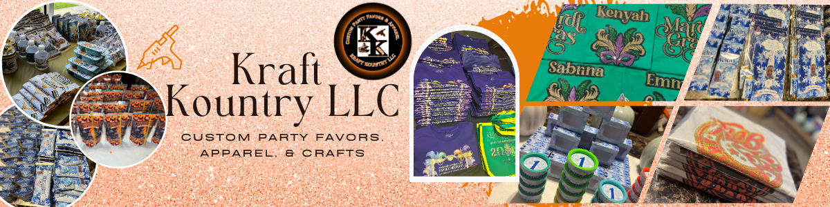 We offer a unique selection of gifts, apparel, and customized party favors. Kraft Kountry LLC provides quality custom goods and services to help customers bring their visions to reality. Allow us to help create a Kustom Kreation that is specifically catered to your requests!